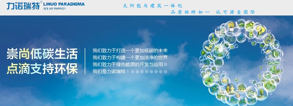 【结束语】 当前国际、国内能源紧张的趋势以及全球保护环境催生了太阳能的大发展,太阳能每年保持着30%以上的发展速度,太阳能热水器已进入千家万户,同时太阳能也受到了国家政策的大力支持,但是在推广过程中呈现了诸多问题,力诺瑞特率先提出了“太阳能与建筑一体化”的理念,成功地引进德国paradigma公司的分体式技术,太阳能的集热器与水箱分开,大大降低了建筑对太阳能热水器使用的限制,使太阳能与建筑完美结合,解决了太阳能与建筑结合的瓶颈,引起了社会各界的高度关注。力诺将带动国内太阳能与建筑一体化结合的快速发展。